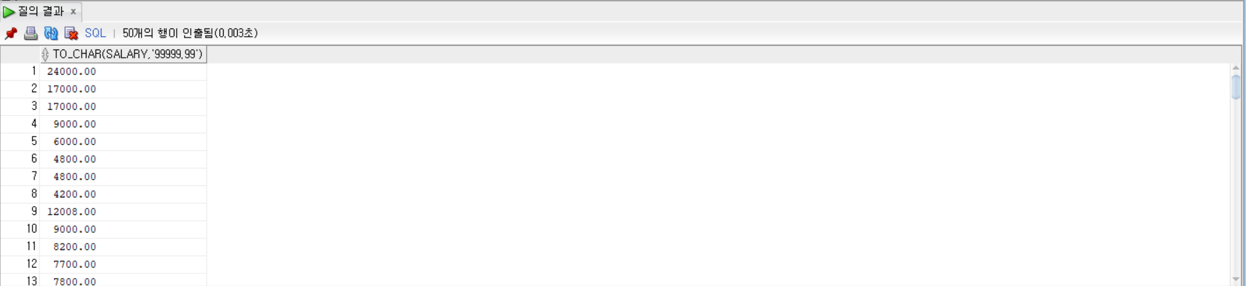 SELECT TO_CHAR(salary, '99999.99') FROM employees;