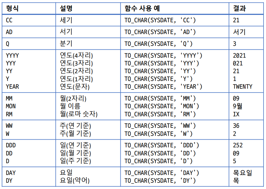 숫자와 날짜 데이터를 문자 데이터로 변환하는 함수