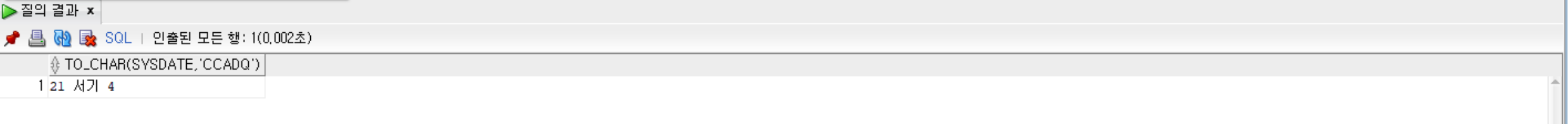 SELECT TO_CHAR(SYSDATE, 'CC AD Q') FROM dual;