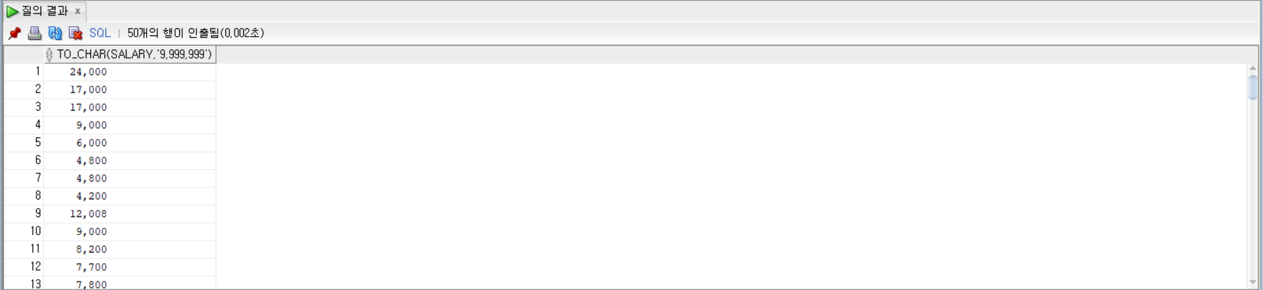 SELECT TO_CHAR(salary, '9999999') FROM employees;