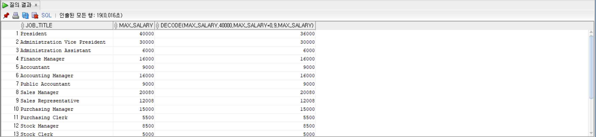 DECODE(max_salary, 40000, max_salary * 0.9, max_salary)