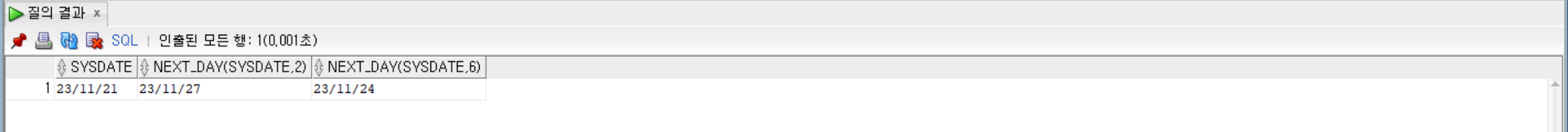 • 지정된 날짜부터 돌아오는 요일 날짜를 출력하는 NEXT_DAY() 함수