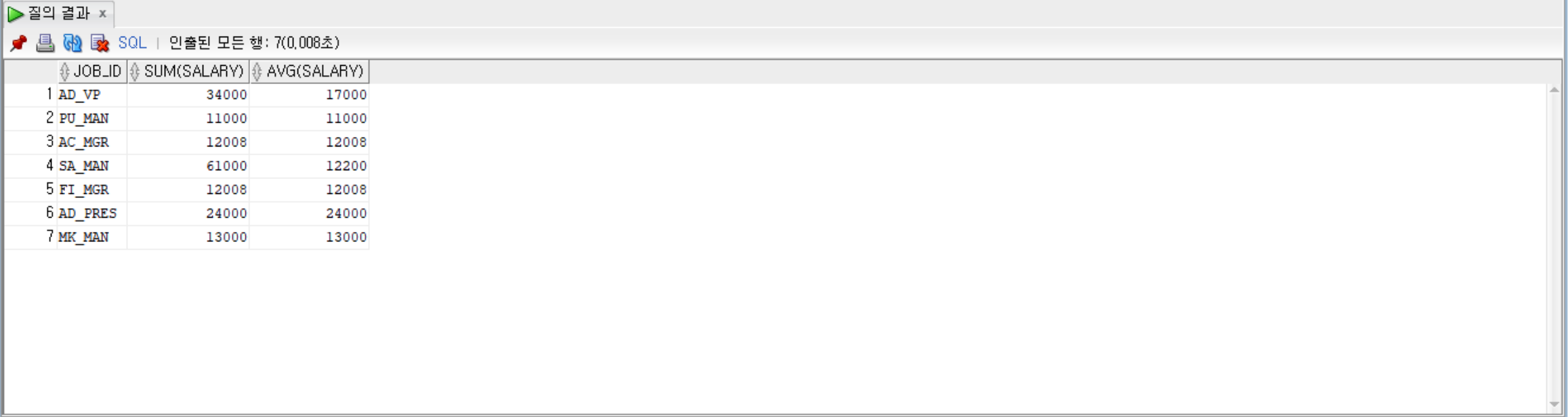 GROUP BY job_id