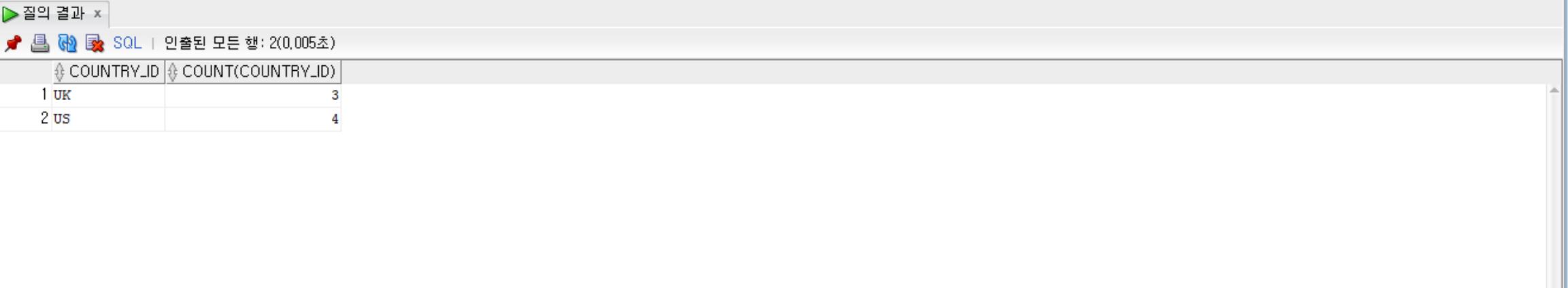 --그룹별로country_id, country_id의 개수 출력