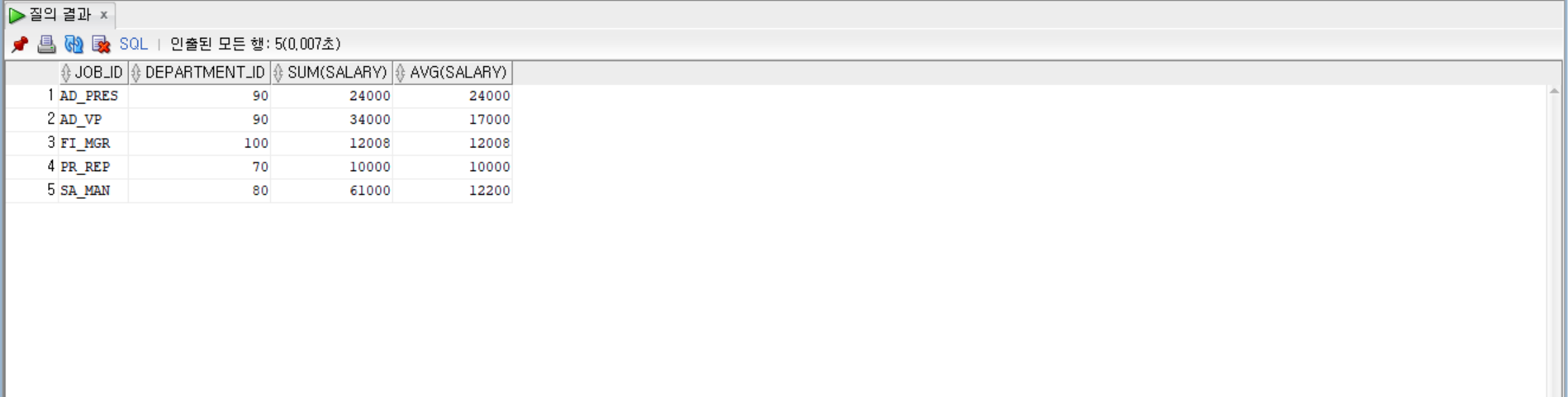 --department_id와 job_id 기준으로 그룹화한 뒤에 department_id와