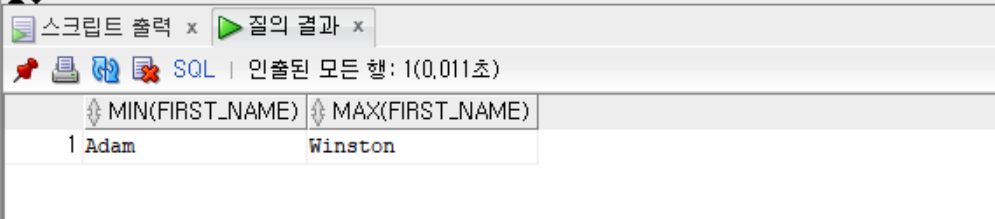 --first_name의 최솟값과 최댓값을 출력(이름순의 최솟값과 최댓값)