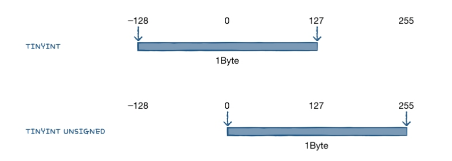 | TINYINT | 1 | -128 ~ 127 |