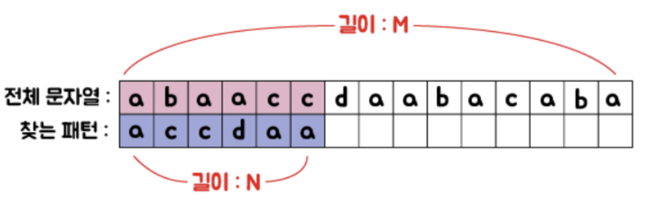 길이가 M인 전체 문자열에서 길이가 N인 문자열을 찾는다고 하면