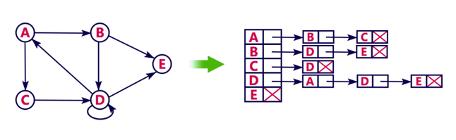 - 모든 정점을 죽 늘어놓고 각 정점의 인접 정점을 옆에 나열