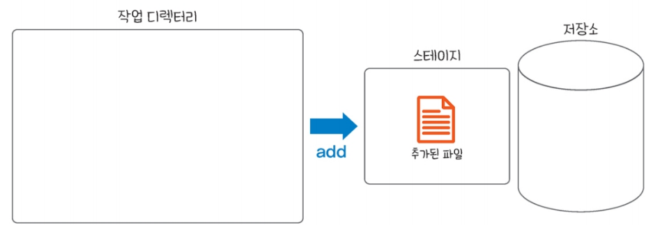 이때 작업 디렉터리에서 버전이 될 후보 파일을 스테이지로 옮기는 것을 '스테이지에 추가한다(add)', '해당 파일을 스테이지 시킨다(staged)' 라고 표현한다.