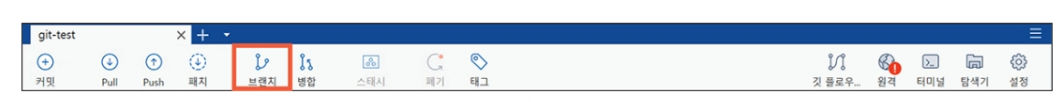 여기서 상단의 브랜치 버튼을 누른다.