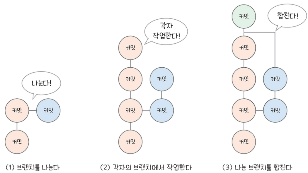 브랜치는 마치 줄기에서 뻗어 나오는 나뭇가지와 같이 버전을 여러 흐름으로 나누어 관리하는 방법이다.