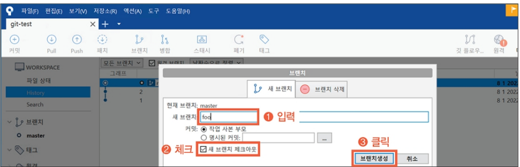 마지막으로 브랜치생성 버튼을 누른다.