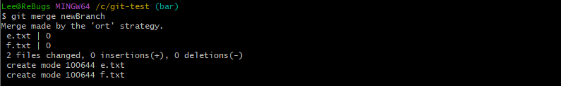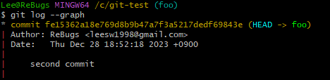 이렇게 되면 master 의 최신 커밋 부분에 foo 브랜치가 재배치 된 것이다.