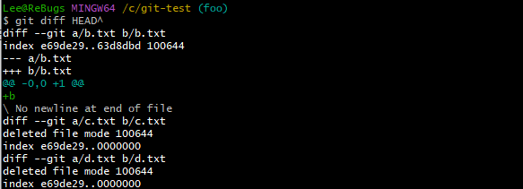 주의해야할 점은 왼쪽 커밋을 기준으로 오른쪽 커밋에서 달라진 점을 출력한다는 것이다.