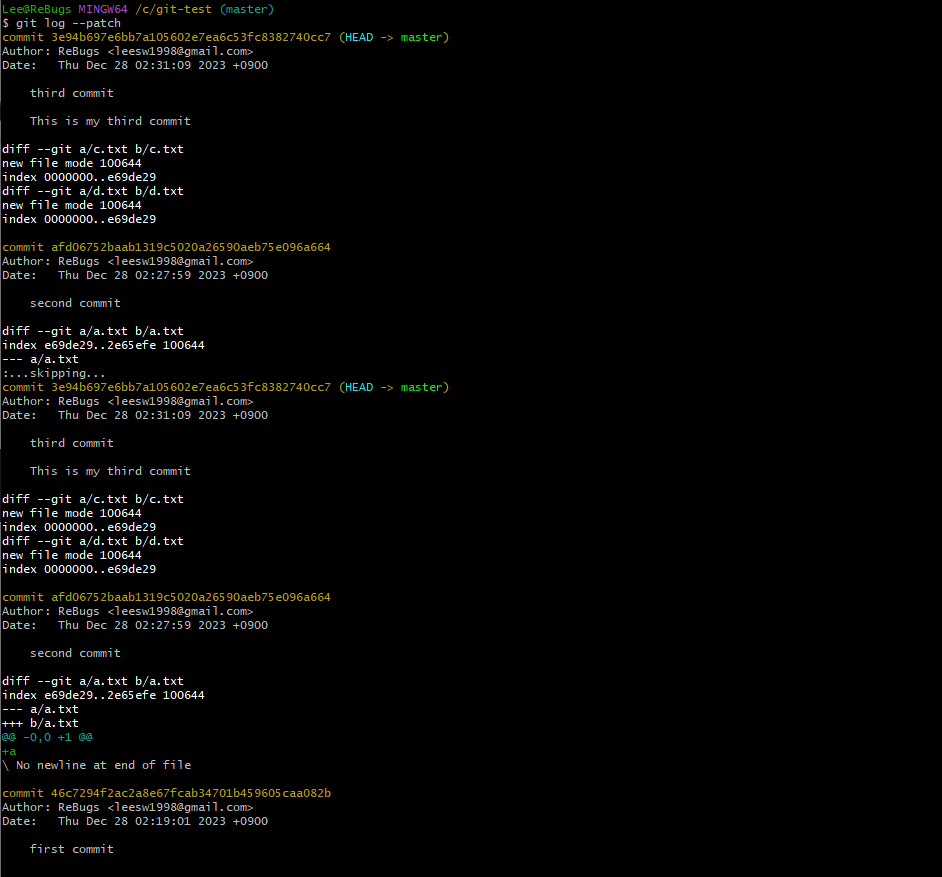 자세한 커밋 과정을 보여주는 명령어는 아래와 같다.