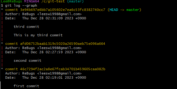 가장 단순한 커밋 조회 명령어는 아래와 같다.