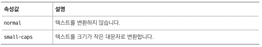 font-variant 속성은 영문 텍스트를 크기가 작은 대문자로 변경할 때 사용한다.