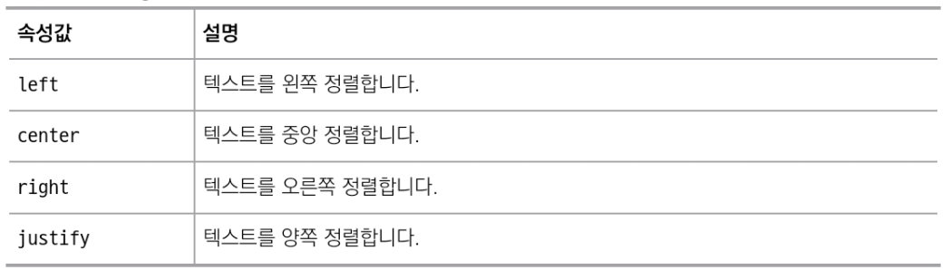 text-align 속성은 텍스트를 정렬할 때 사용한다.