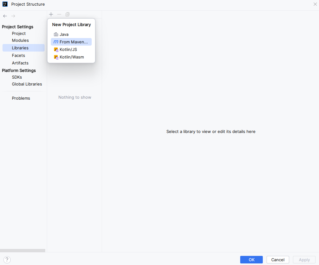 Project Structure - Libraries - +버튼 - From Maven을 누른다.