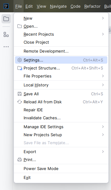 file - settings.. 버튼을 누른다.