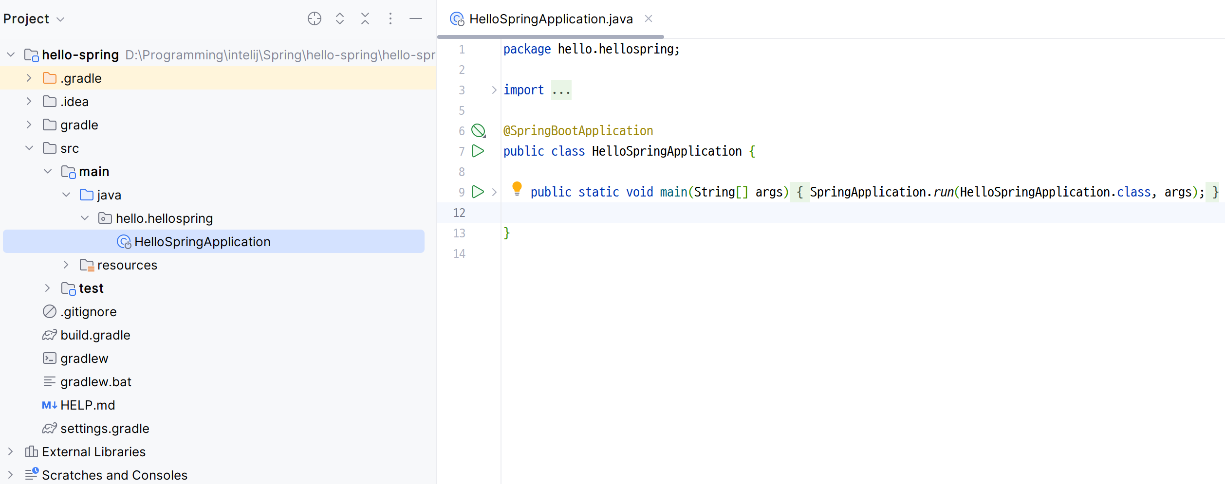 src - main - java - 폴더 밑에 아래와 같은 자바 파일이 보일 것이다.
