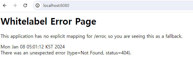이제 웹 브라우저에서 localhost/8080에 접속하면 아래와 같은 화면이 뜬다.