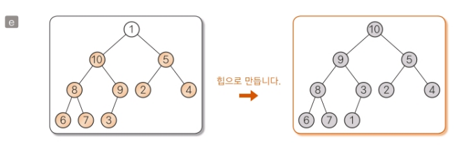 루트 4를 알맞은 위치로 내려보내면서 부분트리(a)를 힙으로 만들 수 있다.