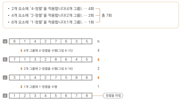 셸 정렬은 다음과 같은 방식으로 동작한다.