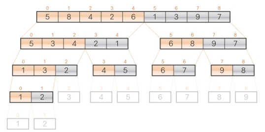 마지막으로 임시 배열인 b를 a로 복사하면 정렬과정이 끝이 난다.