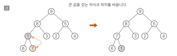 루트 4를 알맞은 위치로 내려보내면서 부분트리(a)를 힙으로 만들 수 있다.