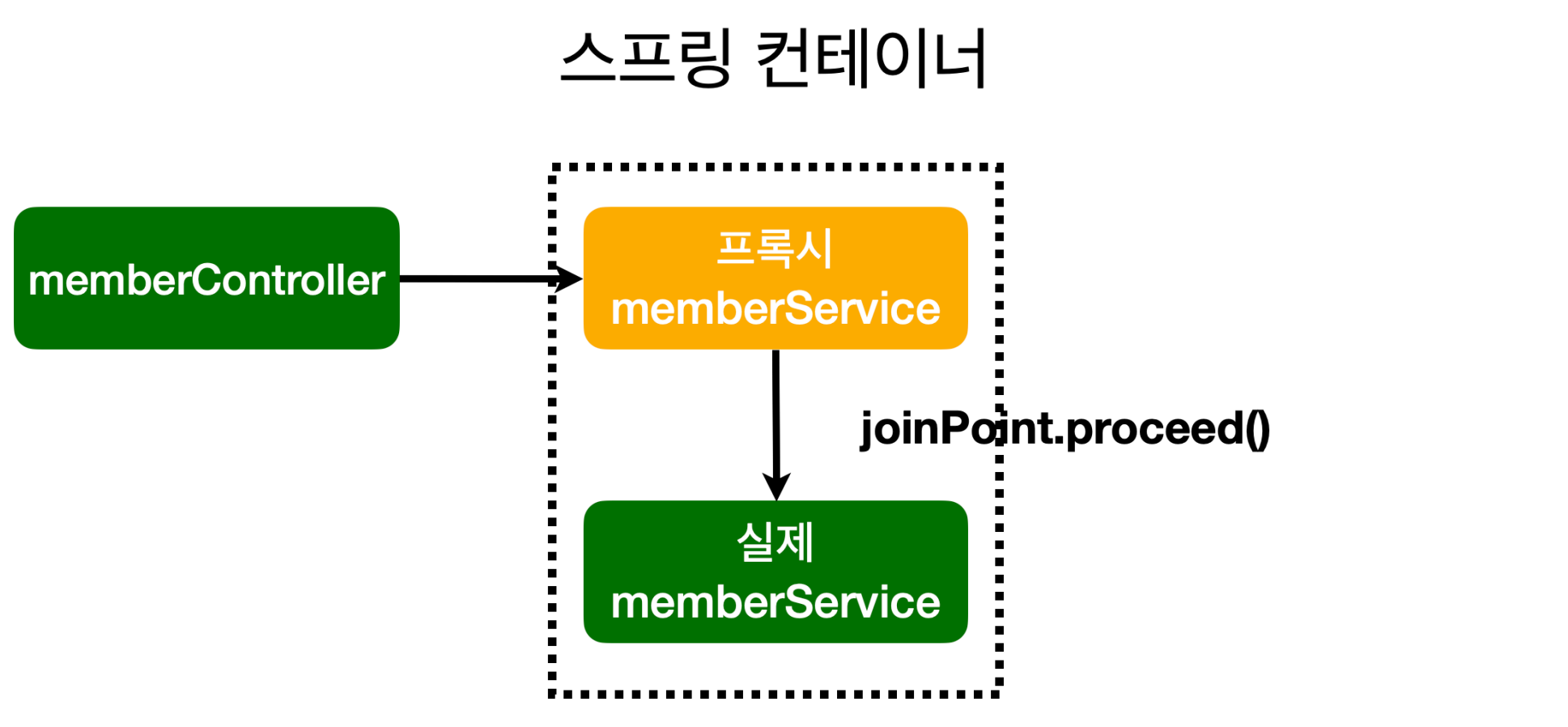 그러면 실제 빈을 실행할 때도 proxy빈이 수행되고 joinpoint가 각각의 메서드들이 실행될 때 개입해 시간체크를 해주는 방식이다.