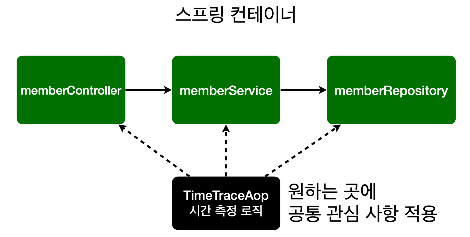 - 회원가입, 회원 조회등 핵심 관심사항과 시간을 측정하는 공통 관심 사항을 분리한다.