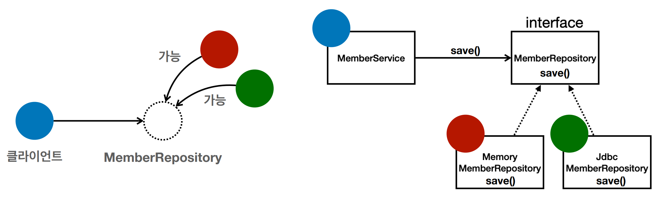 MemberService(클라이언트)는 MemberRepository에 의존적이다.