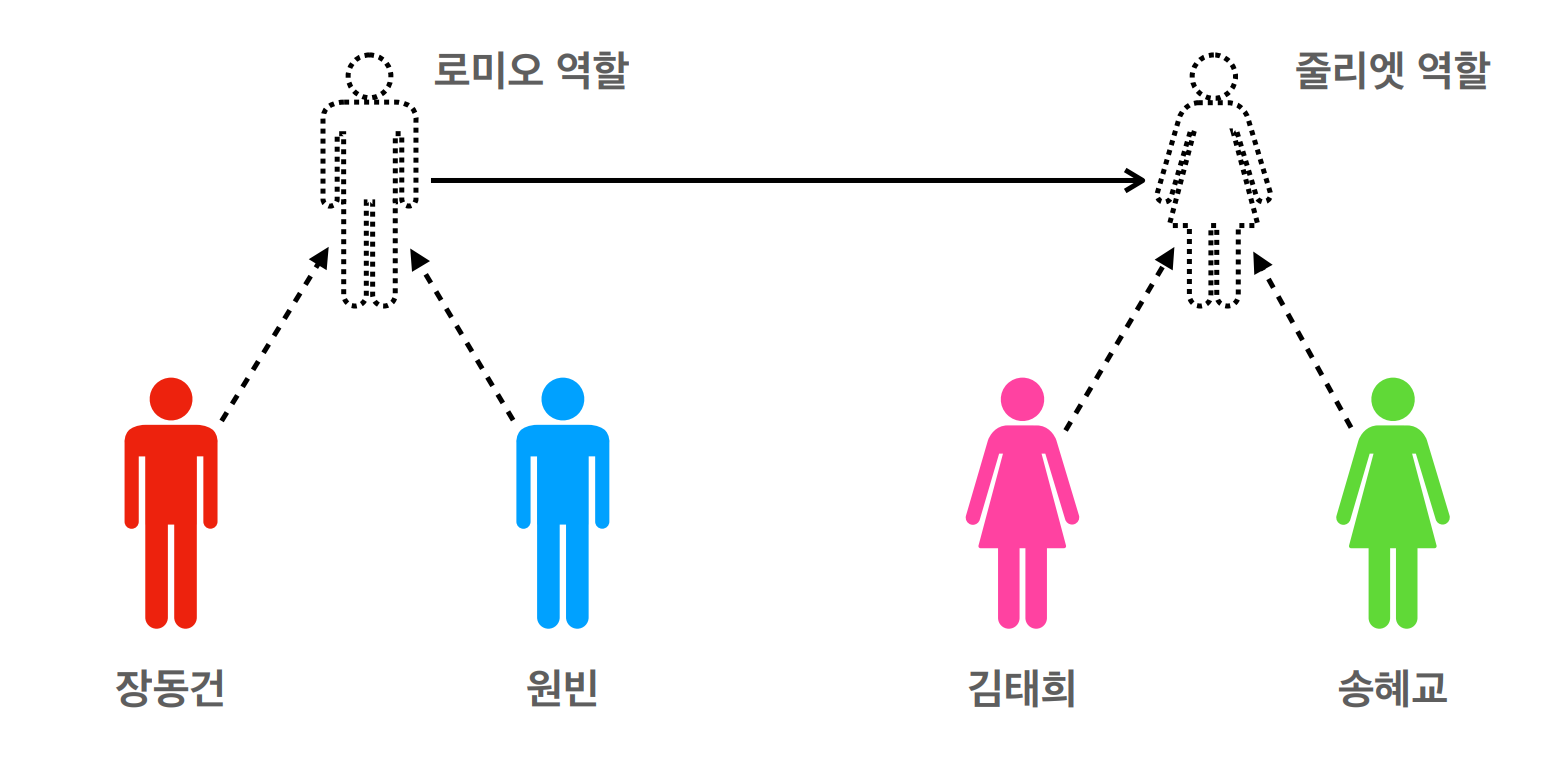 로미오 역할을 하는 사람은 줄리엣 역할을 누가 하는지 몰라도 된다. (역할만 알면 됨)