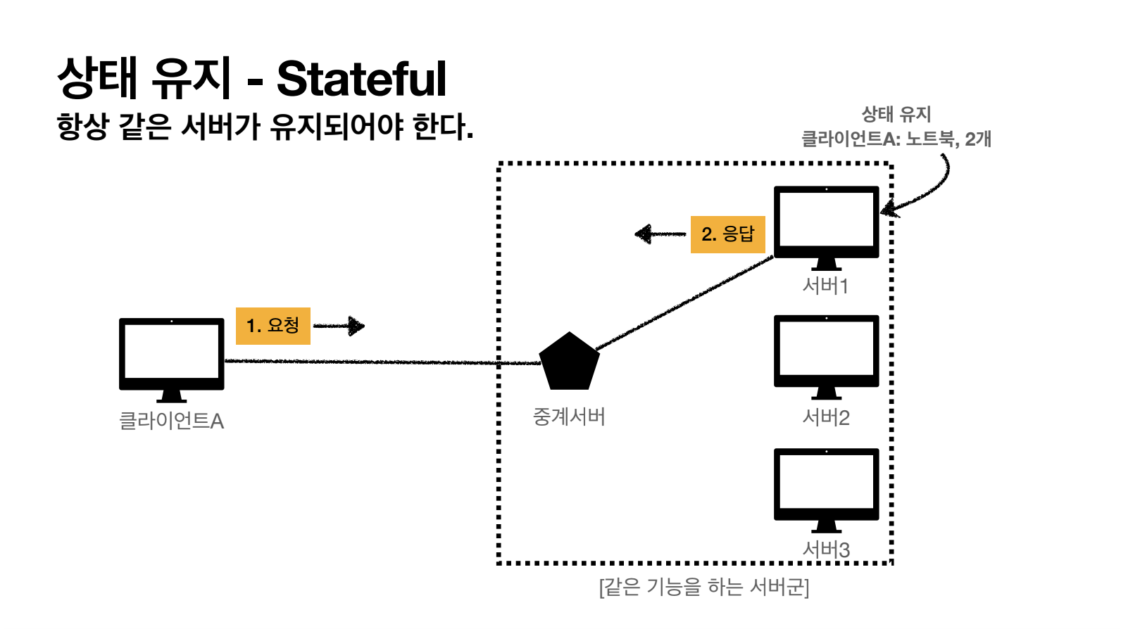 클라이언트가 상품을 구입할 때 상품 정보와 결제 정보를 매칭된 서버로 계속 유지해야 되서 서버를 바꿀 수가 없다.