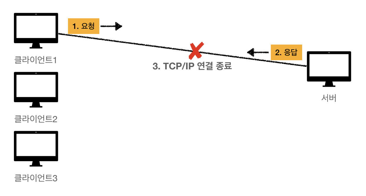 TCP/IP 연결을 새로 맺을 때 마다 3 way handshake 시간 추가가 되서 클라이언트 입장에서는 느리다.