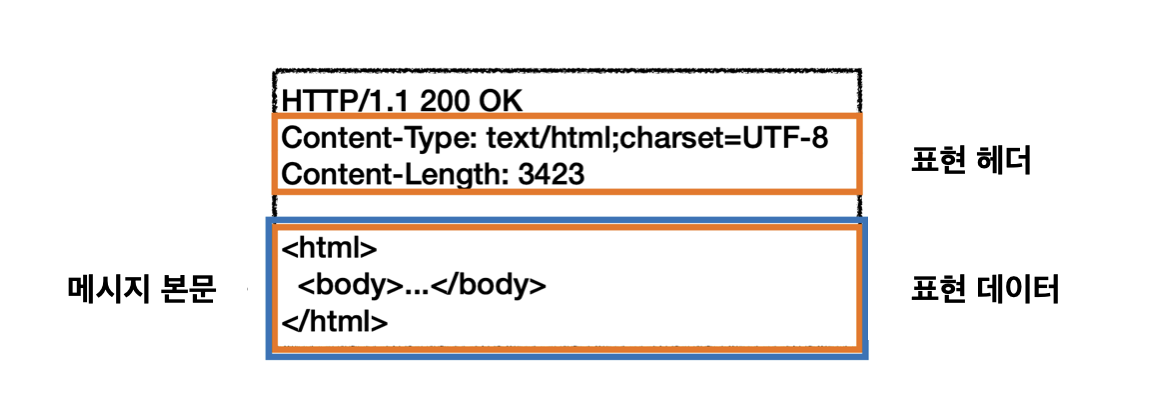 - 표현 = 요청이나 응답에서 전달할 실제 데이터(표현 헤더 + 표현 데이터)