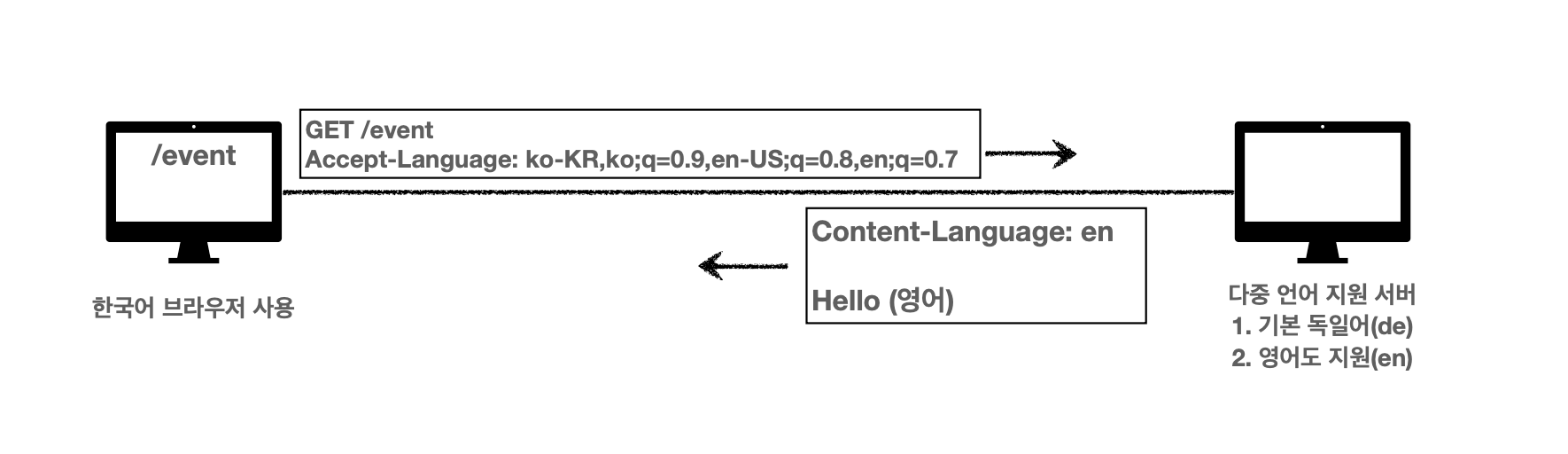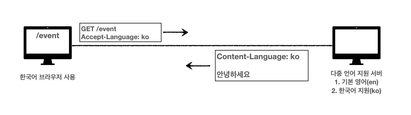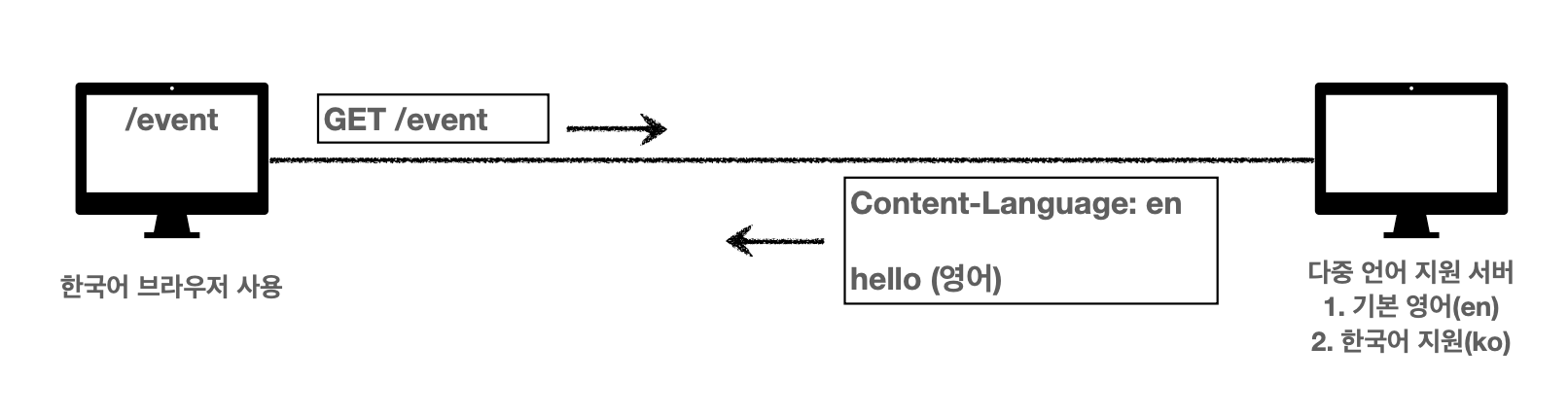 클라이언트에서 서버로 요청을 보낼 때 한국어 정보를 원하는지 영어 정보를 원하는지 아무 정보가 없다.