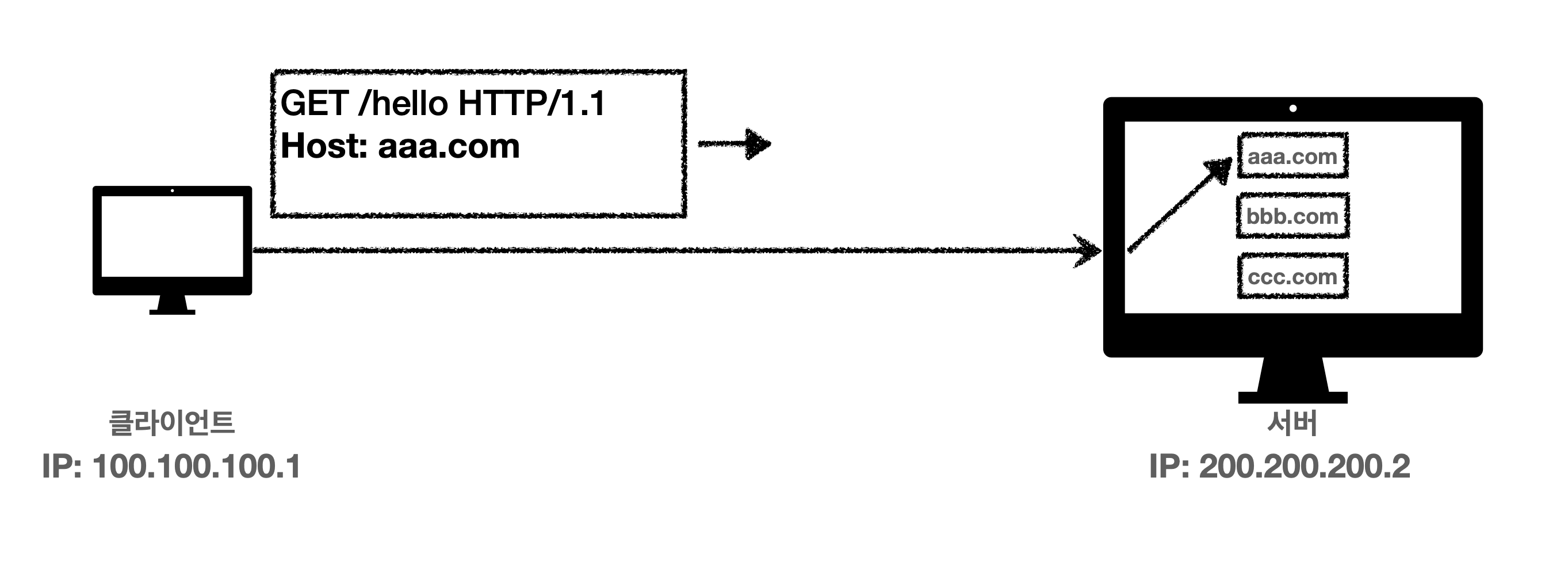 TCP/IP 통신으로 Host 헤더로 입력하면 서버에서 Host 헤더가 있기 때문에 요청에 맞는 도메인주소를 들어갈 수 있다.