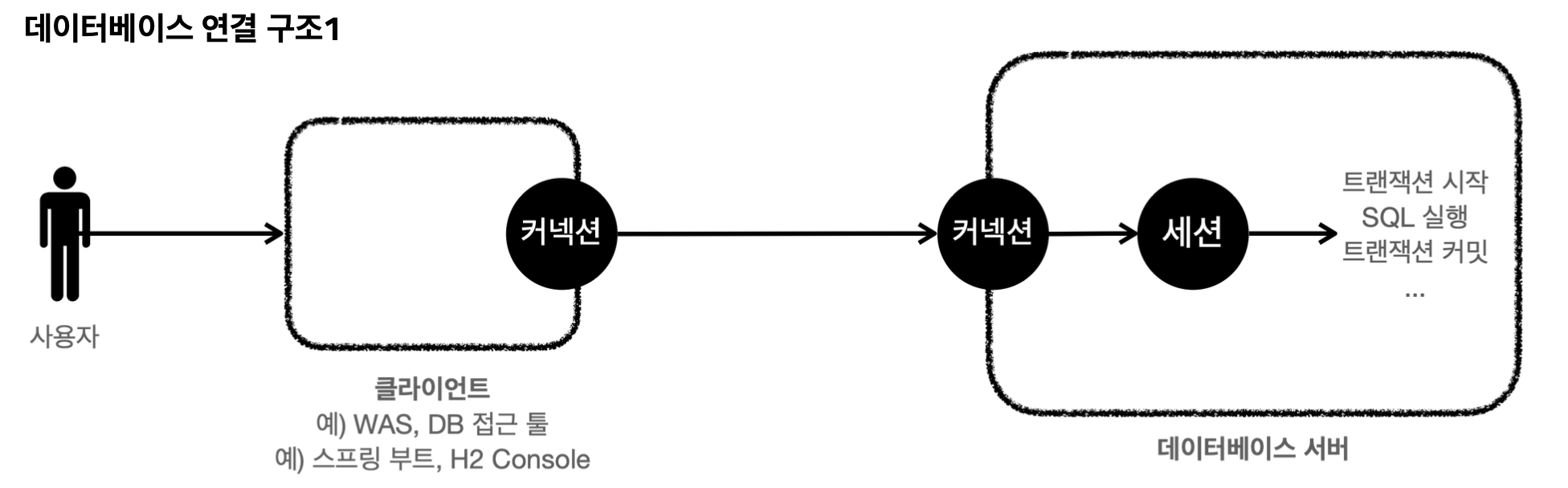 이때 데이터베이스 서버는 내부에 세션을 만든다. 그리고 앞으로 해당 커넥션을 통한 모든 요청은 이 세션을 통해서 실행하게 된다.