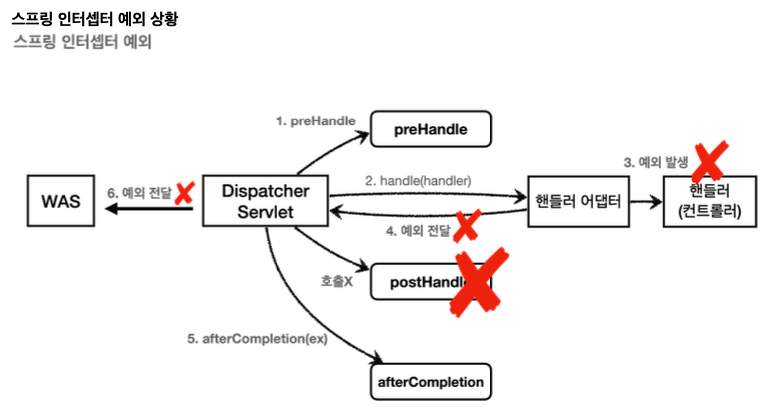 종료 로그를 postHandle 이 아니라 afterCompletion에서 실행한 이유는, 예외가 발생한 경우 postHandle가 호출되지 않기 때문이다. afterCompletion은 예외가 발생해도 호출 되는 것을 보장한다.
