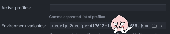 | GOOGLE_APPLICATION_CREDENTIALS=JSON 파일의 경로(상대 경로도 가능) |