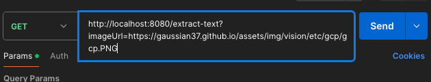 | http://localhost:8080/extract-text?imageUrl=웹상의 이미지 URL 경로 |