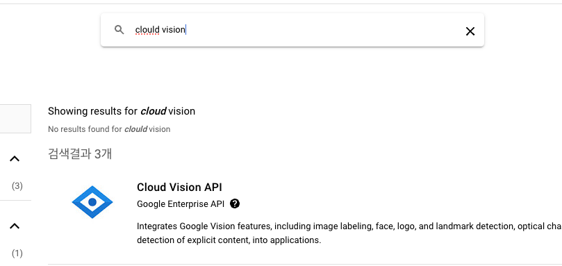 Clould Vision API 를 사용 버튼을 누른다.