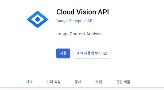 Clould Vision API 를 사용 버튼을 누른다.