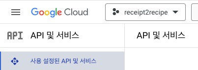 이후 API 및 서비스 - 사용 설정된 API 및 서비스 버튼을 클릭한다.