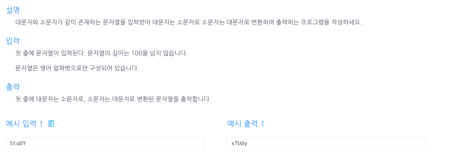 [인프런 알고리즘] Chapter 1, 2번 문제(대소문자 변환)자료구조 & 알고리즘/Inflearn2024. 7. 3. 13:30