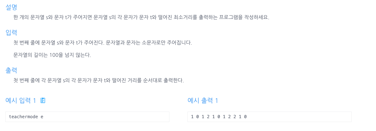 - 출력: 각 문자에 대해 가장 가까운 t 문자와의 거리를 나타내는 배열