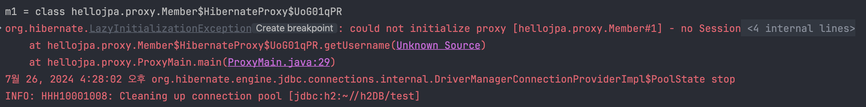 - 준영속 상태(persistent context의 도움을 받을 수 없는 상태)에서 프록시 객체를 초기화하면 문제가 발생할 수 있다.